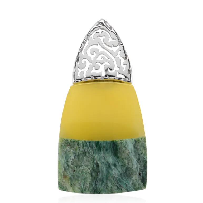 Entdecken Sie die Schönheit dieses Silberanhängers aus Baltischem Bernstein und Fuchsit, bei dem die Kunstfertigkeit der Natur auf modernes Design trifft. Der zeitgemäße Anhänger besticht durch eine Mosaik-Kombination aus warmen Bernsteintönen und sattgrünem Fuchsit, die einen fesselnden Kontrast bilden, der sowohl kühn als auch raffiniert ist. Dieser Anhänger ist ideal, um Ihrer Garderobe einen künstlerischen Touch zu verleihen. Er ist vielseitig einsetzbar und eignet sich sowohl für das tägliche Tragen als auch für besondere Anlässe. Kombinieren Sie ihn mit einer weißen Bluse oder Ihren erdfarbenen Lieblingskleidungsstücken, um ein schickes Stil-Statement abzugeben.