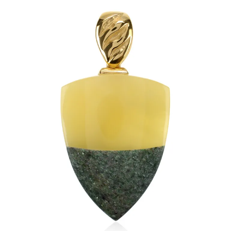 | Abmessungen | Anhänger – 47×25 mm / Mosaik aus baltischem Bernstein und Fuchsit |