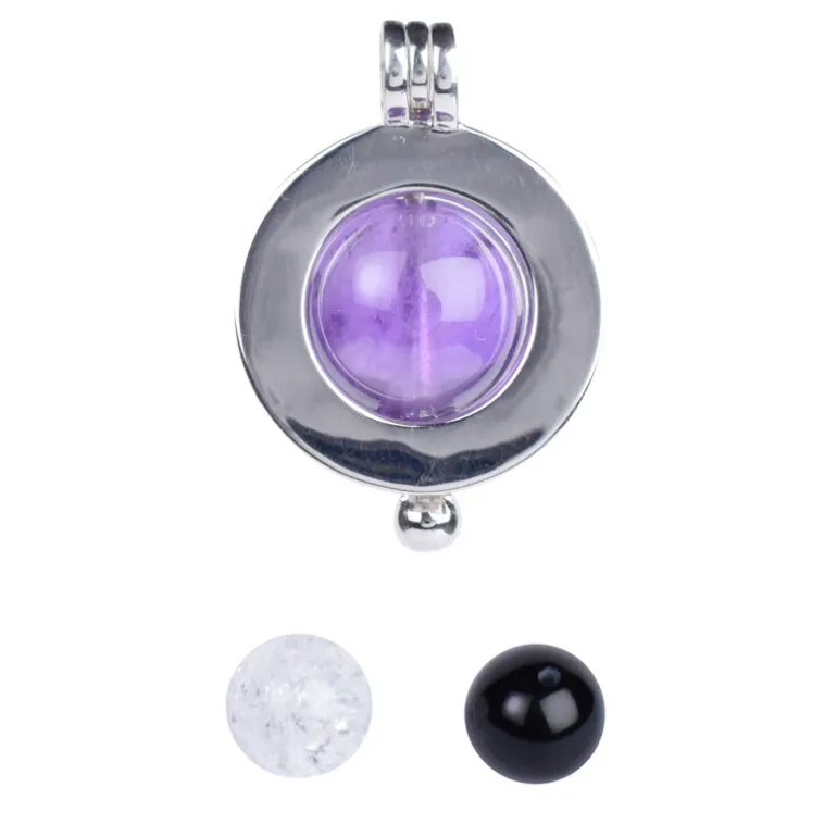 Brasilianisches Trio Amethyst, Quarz & Onyx Silber Anhänger, 34,5ct