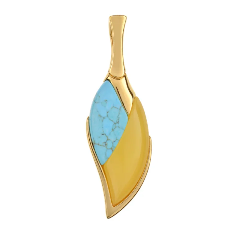 Milchiger Bernstein & Türkis Vergoldeter Silberanhänger