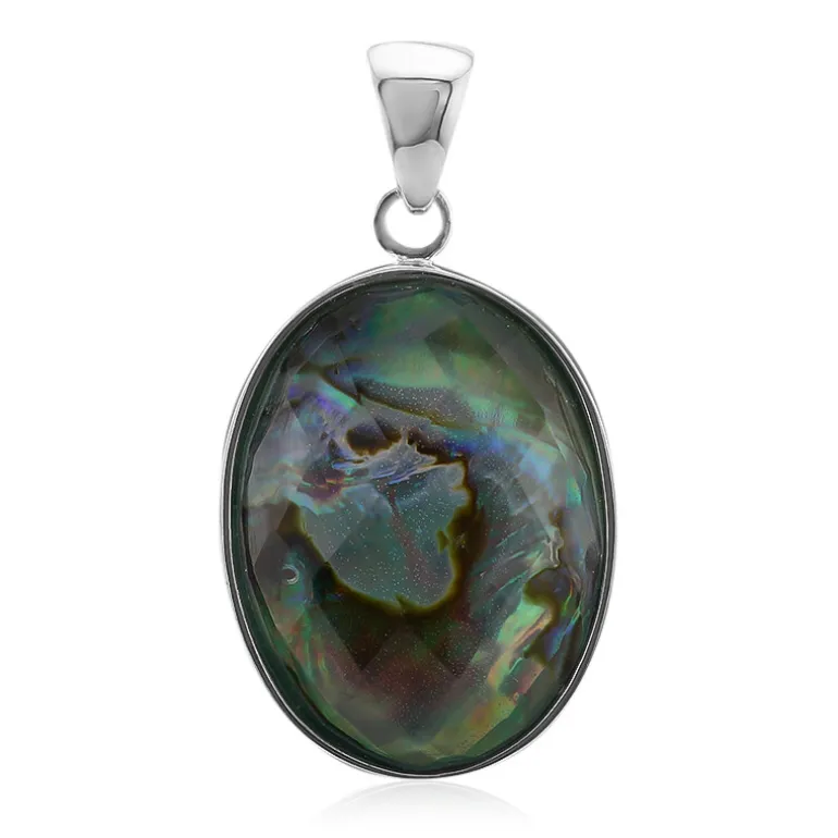 Schillernder Abalone & Weißer Quarz Silberanhänger, 7,531ct