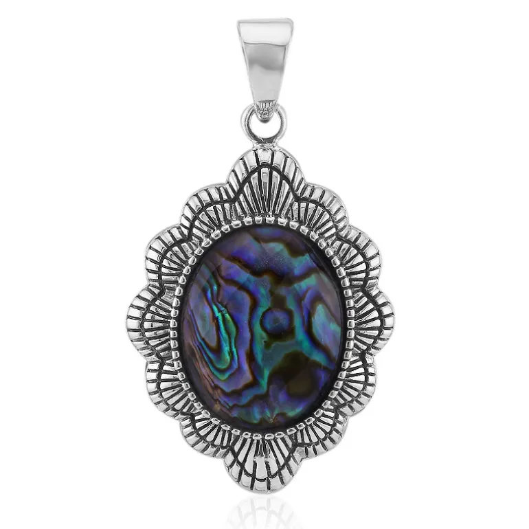 Madagaskar Weißer Quarz & Abalone Silber Anhänger