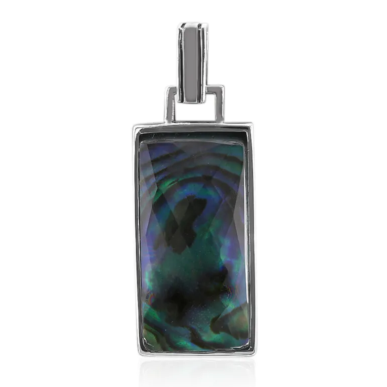 Dieser raffinierte Anhänger verbindet die klare Klarheit des weißen Madagaskar-Quarzes mit dem schillernden Charme der chinesischen Abalone. Der aus poliertem 925er Sterlingsilber gefertigte Anhänger hat einen imposanten Baguetteschliff, dessen Farben im Licht tanzen. Dieser einzigartige Anhänger mit einem Gesamtkaratgewicht von über 10 Karat ist ideal, um sowohl alltäglichen Outfits als auch besonderen Anlässen einen Hauch von Eleganz zu verleihen. Er ist ein fesselnder Gesprächsanlass und eine geschätzte Ergänzung für jede Schmucksammlung.
