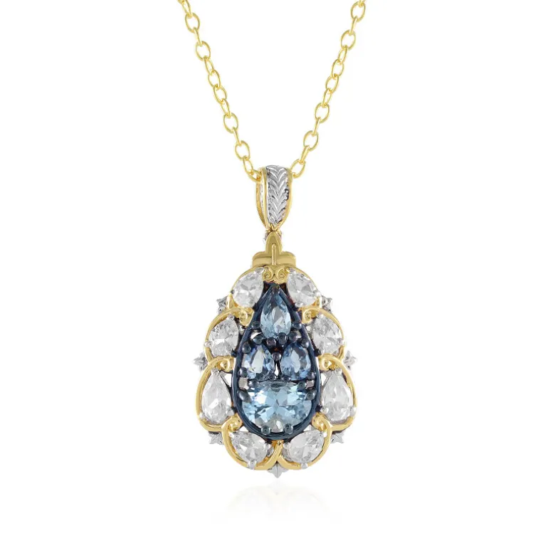 Aquamarin & Zirkon Sterlingsilber-Anhänger