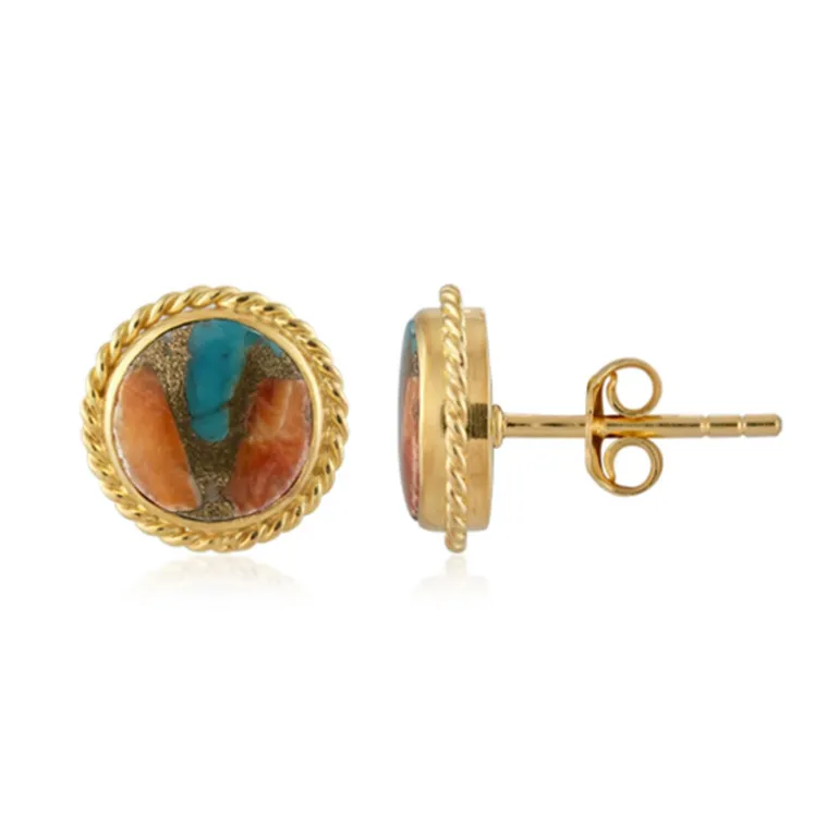 Entdecken Sie die fesselnde Anziehungskraft dieser Kingman-Türkis- und Orangendorn-Austern-Mosaik-Silberohrringe. Mit einer Größe von 13 mm bieten sie eine einzigartige Mischung aus erdigen und ozeanischen Farbtönen, die perfekt sind, um jedem Outfit einen Farbtupfer zu verleihen. Diese Ohrringe eignen sich sowohl für Freizeitkleidung als auch für besondere Anlässe und werten jeden Look mit ihrer lebendigen, natürlichen Eleganz auf.