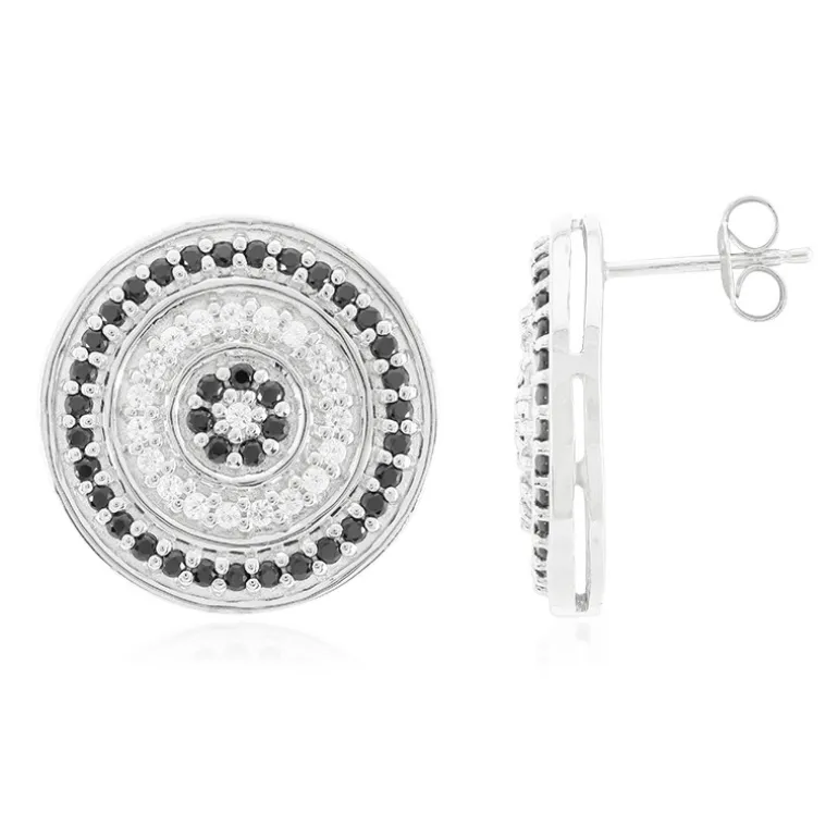 Diese atemberaubenden Ohrringe bestehen aus 76 schwarzen Spinellen aus Thailand und 40 Zirkonen aus Kambodscha, gefasst in feinem 925er Sterlingsilber. Das Gesamtgewicht der Edelsteine von 2,08 Karat schimmert mit Raffinesse, jeder Stein ist sorgfältig in eine runde Brillantform geschliffen. Mit einer Größe von 21 mm sind diese Ohrringe ein echter Hingucker und eignen sich sowohl für den Alltag als auch für besondere Abende. Verleihen Sie Ihrer Sammlung einen Hauch von Eleganz mit diesen vielseitigen Schätzen.