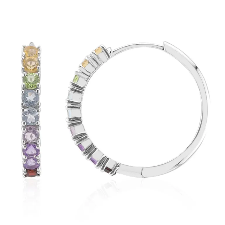 Diese mehrfarbigen Edelstein-Ohrringe aus 925er Sterlingsilber sind elegant. Mit Zitrinen, Peridots, himmelblauen Topasen, Amethysten und Granaten verleihen diese Ohrringe einen lebendigen Touch. Mit einem Gesamtgewicht von 1,901 ct sind sie perfekt, um jedes Outfit zu verschönern. Sie eignen sich sowohl für legere als auch für abendliche Anlässe. Kombinieren Sie sie mit einem schicken Kleid, um einen atemberaubenden Effekt zu erzielen.