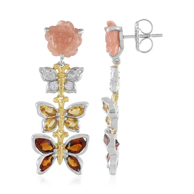 Erleben Sie die Anziehungskraft dieser exquisiten Ohrringe aus Sterlingsilber, die mit einer Vielzahl von Madeira-Citrinen und Citrin-Edelsteinen aus Brasilien besetzt sind. In einem schillernden Schmetterlingsdesign fangen diese Ohrringe bei jeder Bewegung Licht und Aufmerksamkeit ein. Sie eignen sich sowohl für legere als auch für formelle Outfits und verleihen jedem Anlass einen Hauch von Eleganz. Lassen Sie sich von diesem bezaubernden Schmuckstück verzaubern und Ihren Stil aufblühen.