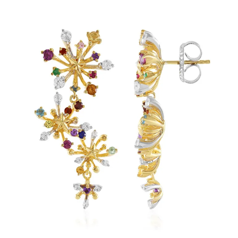 Multicolor Edelsteinkaskade Vergoldete Ohrringe, 2,24ct