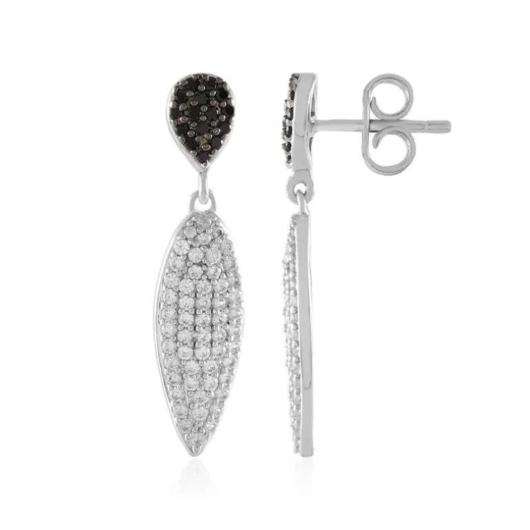 Entdecken Sie die Eleganz dieser atemberaubenden Ohrringe aus Zirkon und schwarzem Spinell, die aus hochwertigem 925er Sterling Silber gefertigt sind. Mit 102 funkelnden Zirkonen und 30 glänzenden schwarzen Spinellen weisen diese Ohrringe ein Gesamtkaratgewicht von 1,584 auf. Sie eignen sich perfekt für besondere Anlässe oder als glamouröse Ergänzung für den Alltag und passen mühelos zu Abendkleidern oder schicker Bürokleidung. Erweitern Sie Ihre Kollektion noch heute.