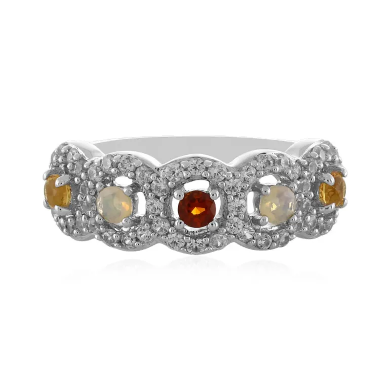 Unser exquisiter Ring aus Sterlingsilber ist mit einer bezaubernden Mischung aus äthiopischen Welo-Opalen, brasilianischen Zitrinen und kambodschanischen Zirkonen geschmückt. Dieses bezaubernde Schmuckstück besticht durch eine reiche Farbpalette und ein Gesamtkaratgewicht von 0,865. Jeder Edelstein ist mit einem Präzisionsschliff von 2,5 mm Durchmesser versehen und in eine 21×21 mm große Fassung eingebettet. Die 52 Zirkonsteine verleihen einen brillanten Schimmer, der Eleganz ausstrahlt. Er eignet sich perfekt, um jedem Ensemble einen Hauch von Raffinesse zu verleihen, und ist ein ideales Geschenk für alle, die den subtilen Reiz von gemischten Edelsteinen zu schätzen wissen.