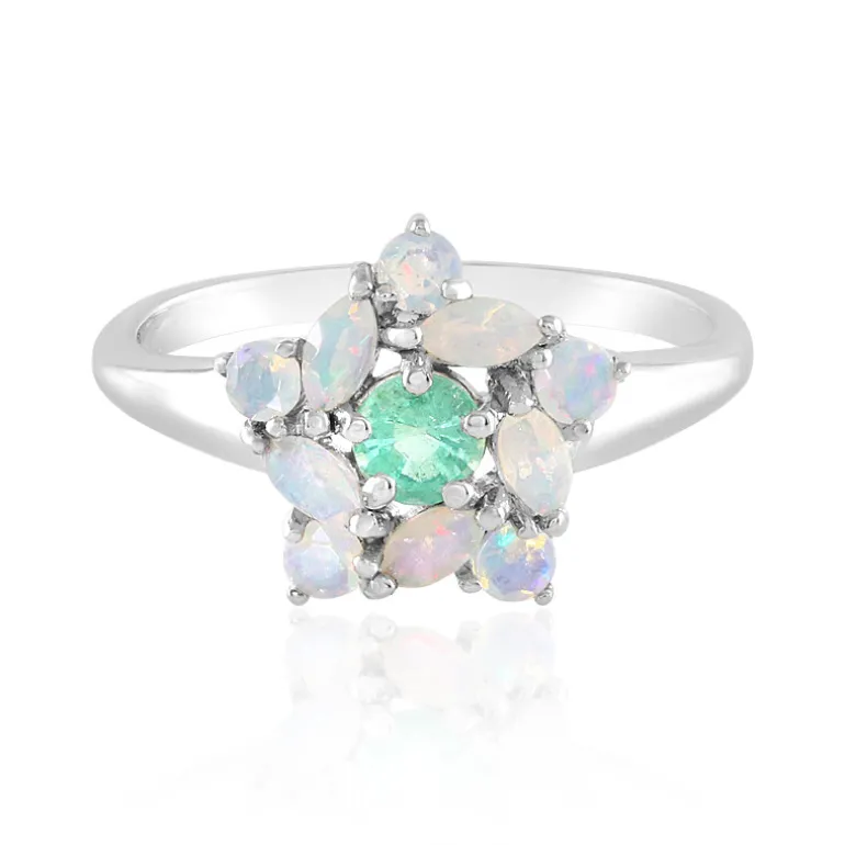 Russischer Smaragd & Äthiopischer Opal Silberring, 0,638ct