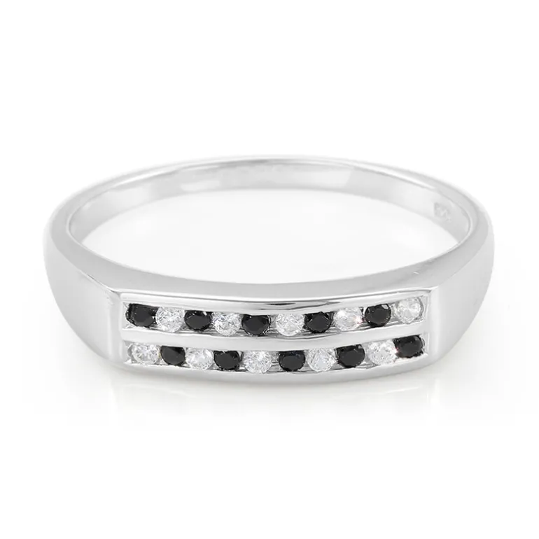 Schicker Schwarzer Spinell & Zirkon Silber Ring, 0,27ct