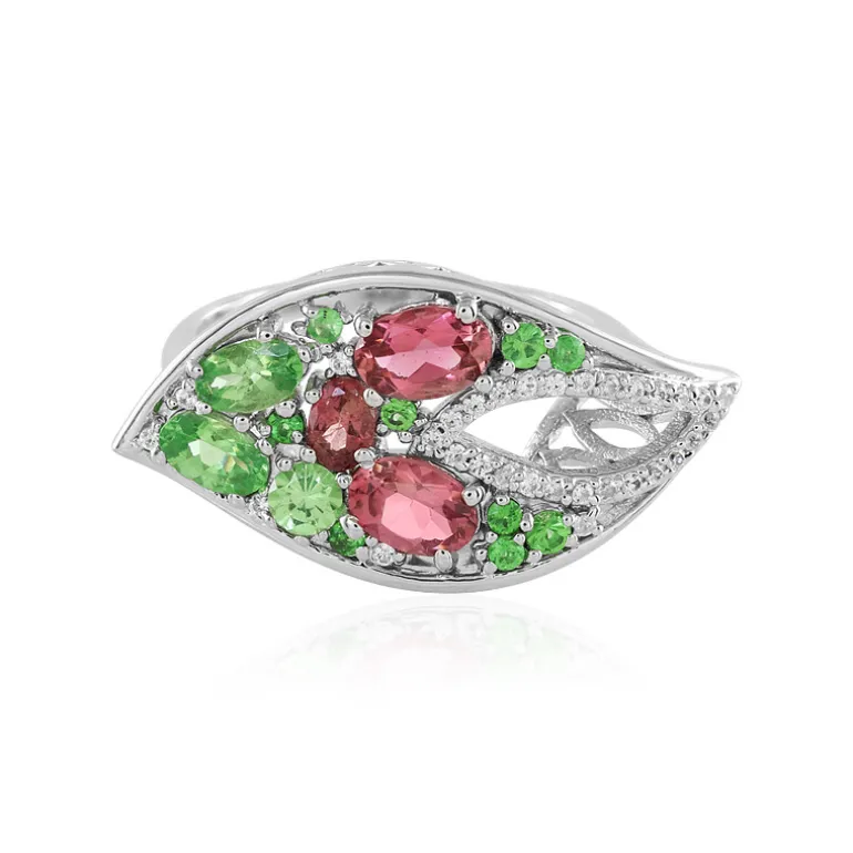 Nigerianischer rosa Turmalin & tansanischer Tsavorit Silberring, 1,93ct