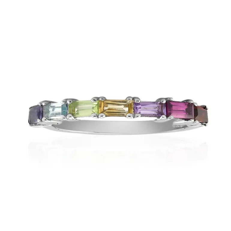 Mehrfarbiger Edelstein 925 Silber Baguette Ring, 0,816ct