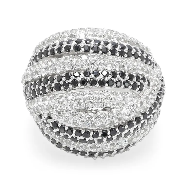 Dieser atemberaubende Ring ist eine Sinfonie der Kontraste mit 170 schwarzen Spinellen und 222 weißen Topasen aus Thailand und Brasilien und verkörpert Raffinesse. Die Edelsteine sind in hochwertiges 925er Sterlingsilber gefasst und wiegen zusammen 5,979 Karat, was ein strahlendes Funkeln aus jedem Blickwinkel garantiert. Mit einer Größe von 37×29 mm setzt er ein Statement und ist dennoch klassisch genug für den Alltag oder besondere Anlässe. Kombinieren Sie dieses vielseitige Schmuckstück mit Abendgarderobe, um Ihren Look aufzuwerten, oder mit Freizeitoutfits für einen Hauch von Glamour.
