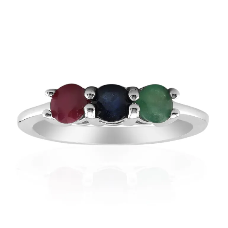 Schmücken Sie Ihren Finger mit einer Sinfonie der Farben. Dieser schicke Ring aus Sterlingsilber besteht aus einem Trio von Edelsteinen – einem leuchtenden brasilianischen Smaragd, einem tiefblauen Saphir aus Madagaskar und einem glänzenden Rubin aus Mosambik -, die jeweils präzise auf 4 mm geschliffen sind. Das Gesamtgewicht der Edelsteine von 0,846 Karat, gefasst in 925er Sterlingsilber, garantiert sowohl Opulenz als auch Beständigkeit. Perfekt, um sowohl im Alltag als auch bei besonderen Anlässen einen Hauch von Eleganz zu vermitteln. Kombinieren Sie ihn mit eleganter Kleidung oder verschenken Sie ihn als Symbol der Liebe und Freundschaft.