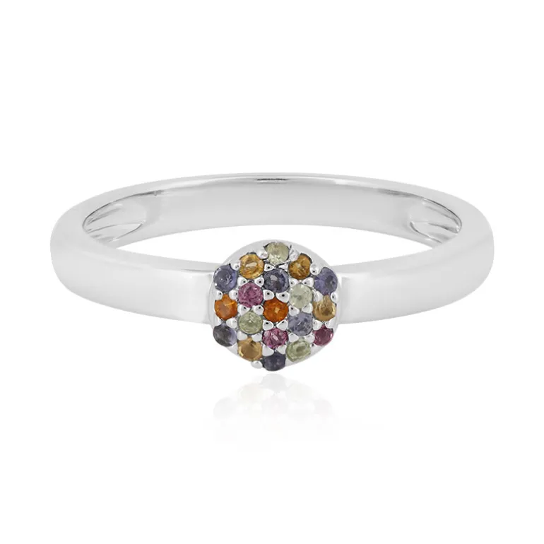 Multicolor Edelstein Mosaik Sterling Silber Ring