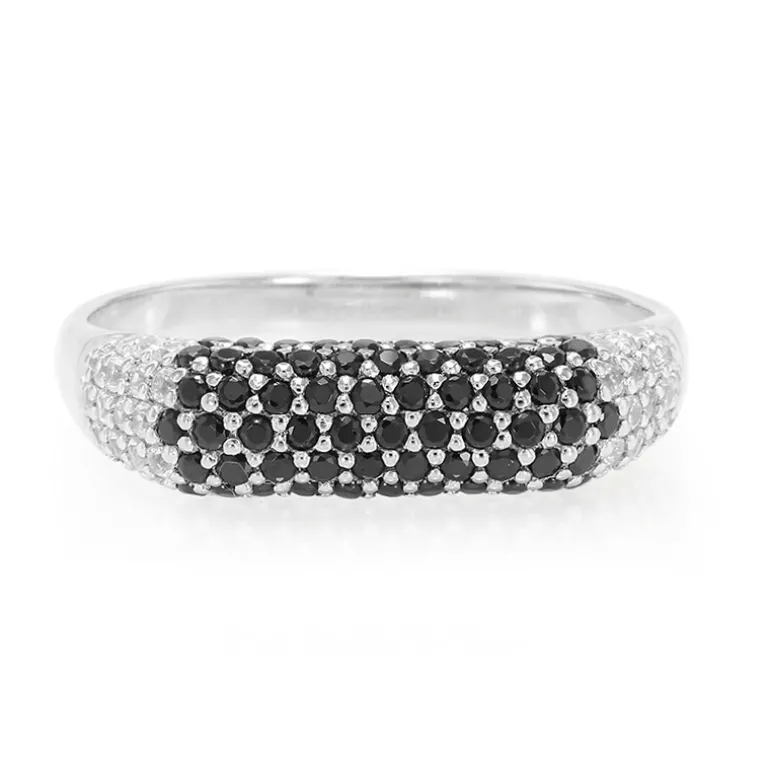 Dieses elegante Band präsentiert eine faszinierende Reihe schwarzer thailändischer Spinelle, die durch kambodschanische Zirkonsteine akzentuiert werden. Mit einem Gesamtkaratgewicht von 1,242 ct. sind die Steine fachmännisch im runden Brillantschliff geschliffen und bringen die Hand der Trägerin zum Funkeln. Der aus hochwertigem 925er Sterlingsilber gefertigte Ring wiegt ca. 2,24 g und passt sowohl zu legerer als auch zu gehobener Kleidung, was ihn zu einer idealen Wahl für jeden Anlass macht.