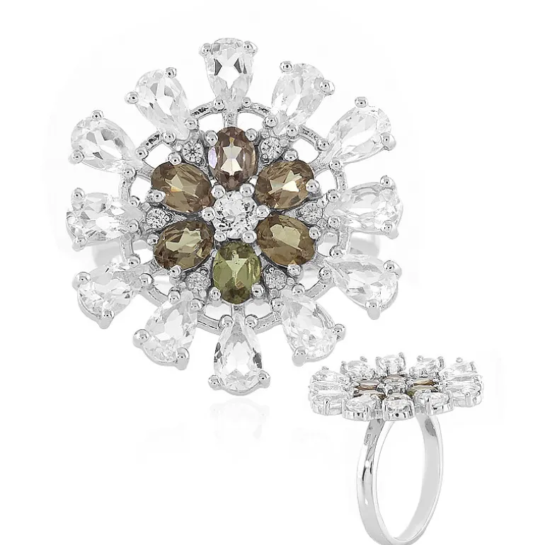 Lassen Sie sich von diesem atemberaubenden Ring aus Sterlingsilber mit einem faszinierenden Arrangement aus farbwechselnden Granaten und weißen Topasen aus Madagaskar verzaubern und faszinieren. Der Ring mit einem Gesamtkaratgewicht von 4,1 ct weist ein dynamisches florales Muster auf, das durch einen zentralen Granat akzentuiert wird, der unter verschiedenen Lichtverhältnissen seinen Farbton wechselt. Diese chamäleonartige Eigenschaft macht ihn zu einem perfekten Gesprächsanlass für jede Veranstaltung. Umgeben vom Funkeln weißer Topase im Tropfen- und Ovalschliff und akzentuiert von zarten Zirkonen aus Kambodscha, ist er die ideale Wahl, um der Abendgarderobe Glamour zu verleihen oder der Alltagskleidung einen raffinierten Touch zu verleihen.