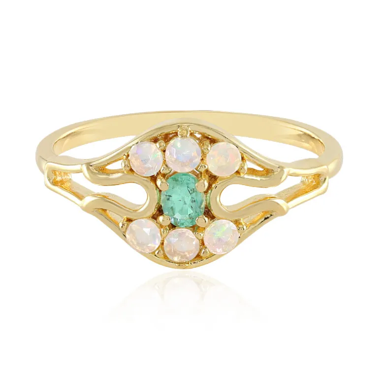 Russischer Smaragd & Äthiopischer Opal Goldplattierter Ring, 0,378 ct