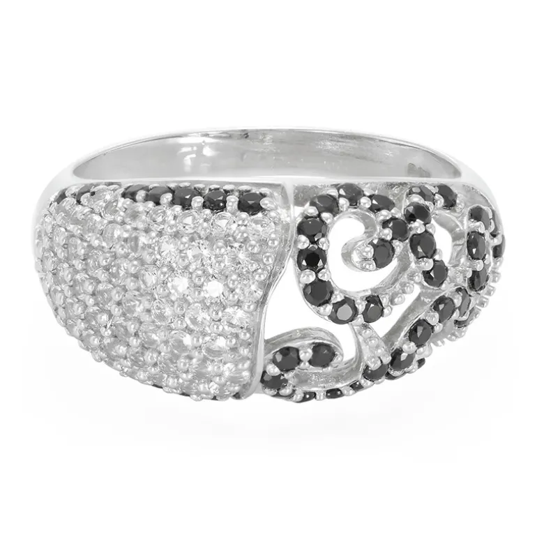 Dieses prächtige Schmuckstück besteht aus einer harmonischen Mischung von 48 schwarzen Spinellen und 55 weißen Topasen, die einen eleganten Kontrast bilden und in hochwertigem 925er Sterlingsilber gefasst sind. Mit einem Gesamtkaratgewicht von 1,013 ct glänzen die runden Edelsteine im Brillantschliff aus Thailand und Brasilien durch ihren präzisen Schliff. Das hohe Silbergewicht von ca. 3,18 g sorgt für ein luxuriöses Tragegefühl. Dieser Ring ist ideal, um jeder Abendgarderobe einen Hauch von Raffinesse zu verleihen und verspricht, bei jeder gesellschaftlichen Veranstaltung für Gesprächsstoff zu sorgen.