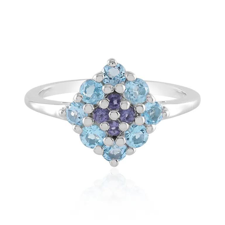 Schweizer Blautopas & Iolith Sterling Silber Ring, Brasilien 1,053ct
