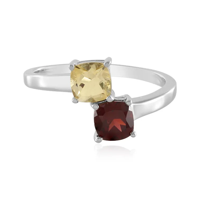 Entdecken Sie die warme Umarmung des Herbstes mit diesem atemberaubenden Ring aus Sterlingsilber, der einen 1,064-karätigen Granat aus Mosambik mit einem 0,684-karätigen brasilianischen Citrin vereint. Beide Edelsteine sind in einer antiken Kissenform geschliffen und fangen die Farben der sich verändernden Blätter ein und bieten einen klassischen Touch mit modernem Flair. Dieses Schmuckstück mit zwei Edelsteinen wiegt insgesamt 2,41 g und ist platinplattiert, was für Langlebigkeit und zusätzlichen Glanz sorgt. Es eignet sich perfekt, um Ihrer Alltagskleidung einen Hauch von Farbe zu verleihen oder ein neutrales Outfit für einen Abend aufzupeppen.
