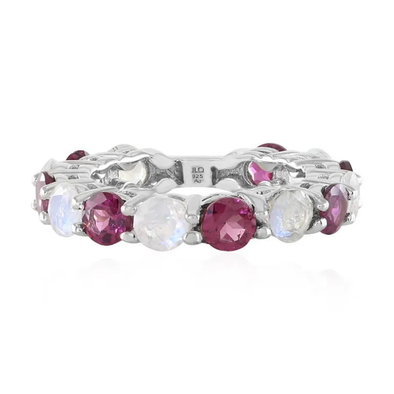Entdecken Sie den lebendigen Charme dieses modernen Rings, der mit einer Reihe von mehrfarbigen Edelsteinen besetzt ist. Jeder Stein ist sorgfältig in glänzendes Sterlingsilber gefasst und präsentiert sich in tiefen Rosa- und ruhigen Blautönen, die sich zu einem auffälligen Schmuckstück verbinden. Dieser Ring ist ideal, um jedem Outfit einen farbigen Akzent zu verleihen. Er sorgt für Gesprächsstoff bei geselligen Anlässen und verleiht Ihrer Alltagskleidung einen funkelnden Touch. Sein vielseitiges Design passt sowohl zu formellen Anlässen als auch zu Freizeitaktivitäten und macht ihn zu einer wertvollen Ergänzung Ihrer Schmucksammlung.