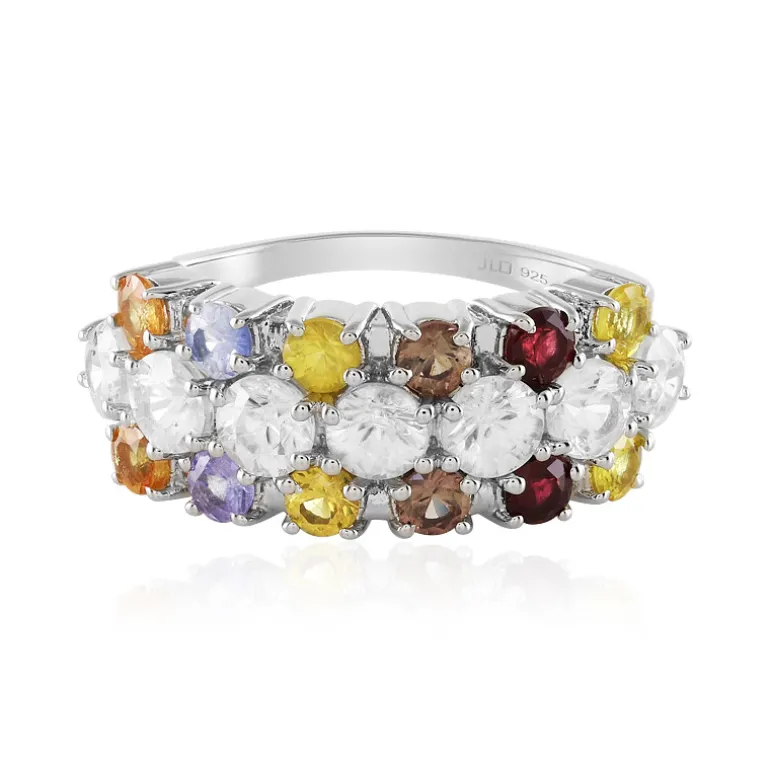 Entdecken Sie einen Regenbogen in Ihren Fingerspitzen mit diesem Ring aus Sterlingsilber, der eine Reihe von 7 Zirkonen aus Kambodscha und 12 Saphiren aus Madagaskar mit insgesamt 4,035 Karat präsentiert. Der runde Brillant- und der runde Saphirschliff harmonieren zu einem brillanten Farbteppich, der in platiniertem 925er Silber für dauerhaften Glanz sorgt. Dieser Ring eignet sich perfekt, um jedem Outfit einen Farbtupfer zu verleihen. Er sorgt für Gesprächsstoff bei geselligen Zusammenkünften und verleiht Ihrem Alltagsoutfit einen Hauch von Eleganz.