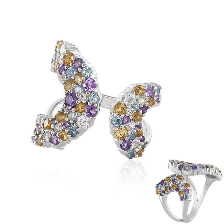 Mehrfarbiger Edelstein Cluster 925 Silber Ring, 2,482ct