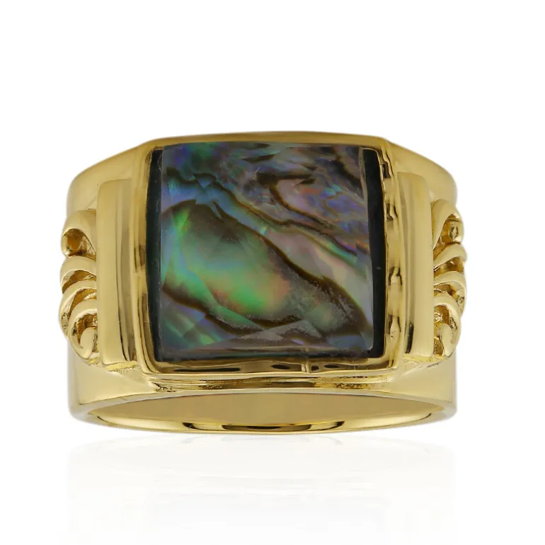 Entdecken Sie die bezaubernde Schönheit dieses Rings mit einem weißen Quarz im Schachbrettschliff von 3,137 Karat aus Madagaskar, gepaart mit den schillernden Farben einer chinesischen Abalone-Muschel. Eingefasst in ein luxuriöses Band aus vergoldetem 925er Sterling Silber, verbindet dieses Schmuckstück modernes Design mit der Kunstfertigkeit der Natur. Das schimmernde Lichtspiel der Abalone macht diesen Ring zu einem Statement-Accessoire, das sich sowohl für die Eleganz am Tag als auch für den Glamour am Abend eignet. Kombinieren Sie dieses auffällige Stück mit Ihrem Lieblingscocktailkleid oder einer schicken Bluse für einen sofortigen raffinierten Look.