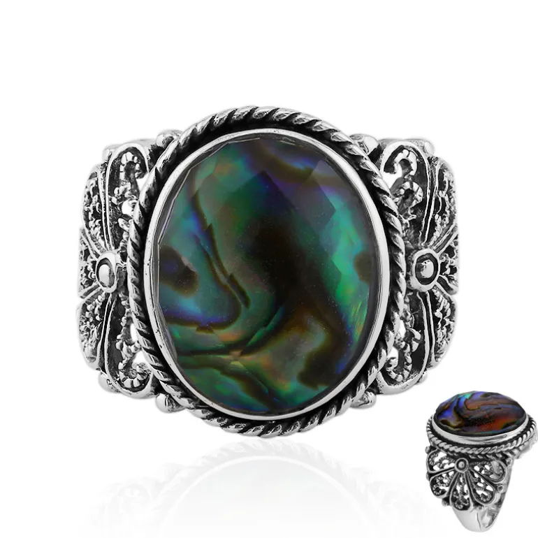 Madagaskar Weißer Quarz & Abalone Silber Ring, 5.134ct