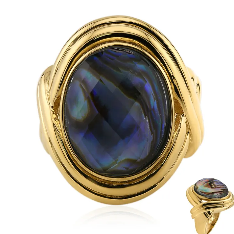 Entdecken Sie die verführerische Verschmelzung von weißem Quarz aus Madagaskar und chinesischer Abalone in diesem exquisiten Ring aus vergoldetem 925er Sterling Silber. Der opulente, ovale Quarz im Schachbrettschliff mit 4,99 Karat wird durch die schillernden Farben der Abalone ergänzt und schafft ein Statement, das die kunstvolle Umarmung der Natur widerspiegelt. Dieser Ring ist ein vielseitiger Schmuck für jede Gelegenheit und ideal, um sowohl der Tages- als auch der Abendgarderobe einen Hauch von Eleganz zu verleihen. Sein faszinierendes Licht- und Farbenspiel wird Sie in seinen Bann ziehen und bezaubern.