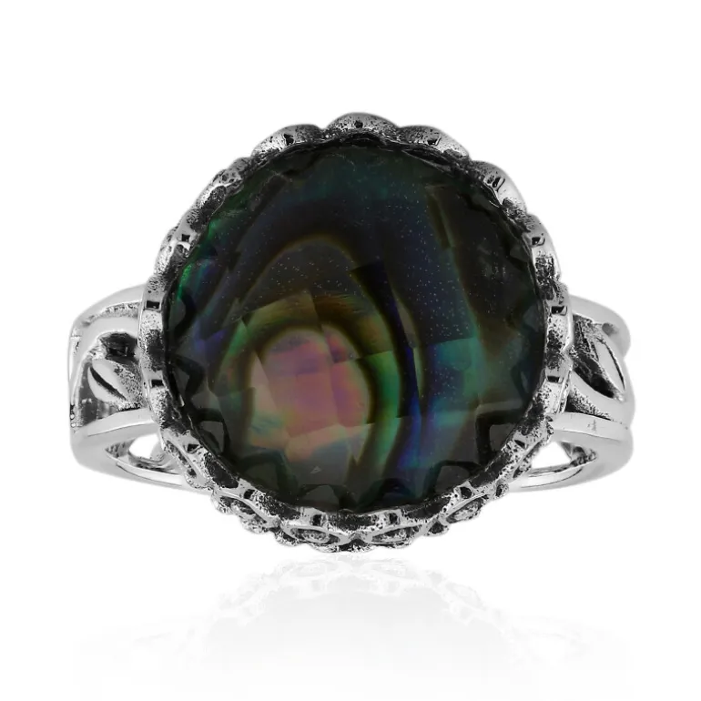 Madagaskar Weißer Quarz & Abalone Silber Ring, 3,757ct