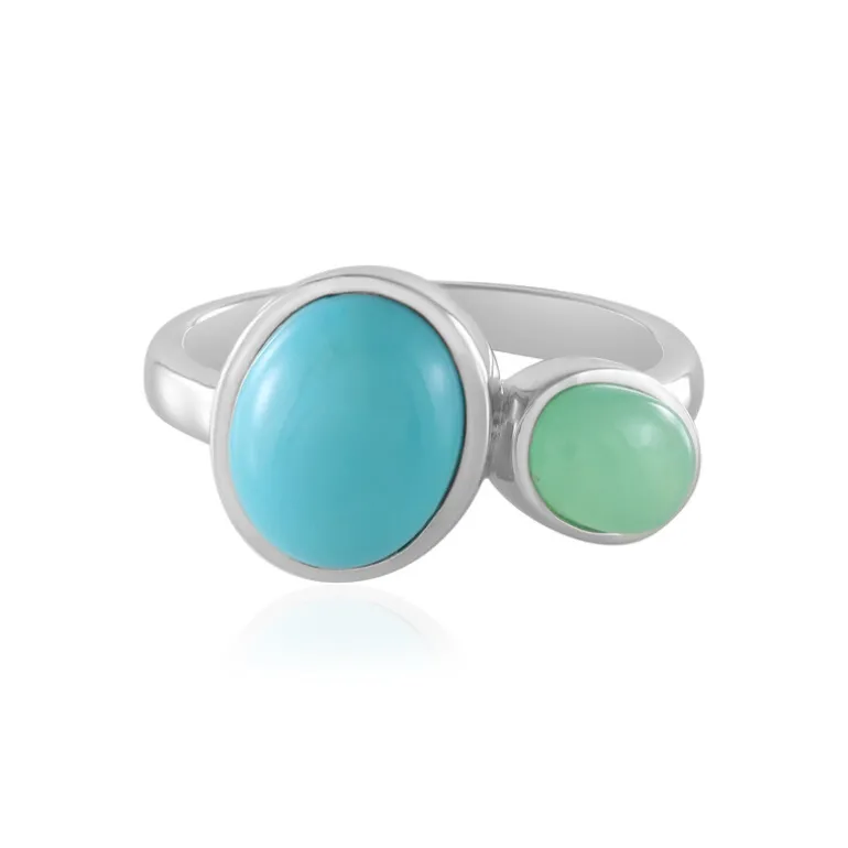 Entdecken Sie die exquisite Eleganz dieses Rings mit einem Dornröschen-Türkis aus den USA und einem australischen Chrysopras. Gefertigt aus 925er Sterlingsilber, bietet er einen brillanten Farbkontrast, der die Aufmerksamkeit auf sich zieht. Dieses Schmuckstück lässt sich perfekt mit legerer oder formeller Kleidung kombinieren und eignet sich sowohl für den Alltag als auch für besondere Anlässe, da es jedem Outfit einen Hauch von Raffinesse verleiht.