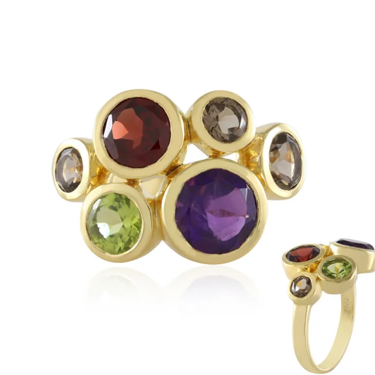 Amethyst-Granat-Peridot-Quarz vergoldeter Ring
