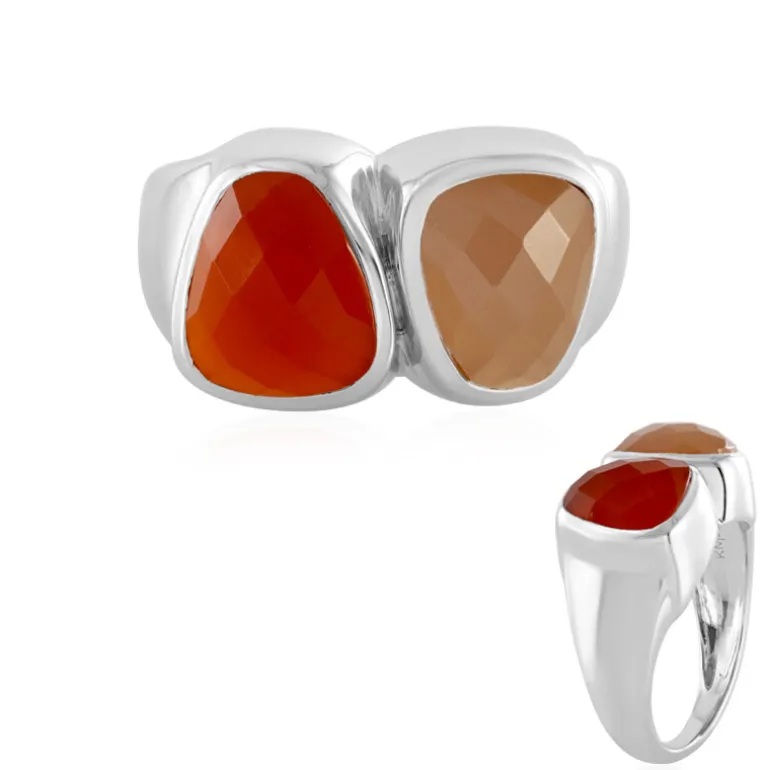 Schicker indischer Karneol & Mondstein Silberring, 5,31ct