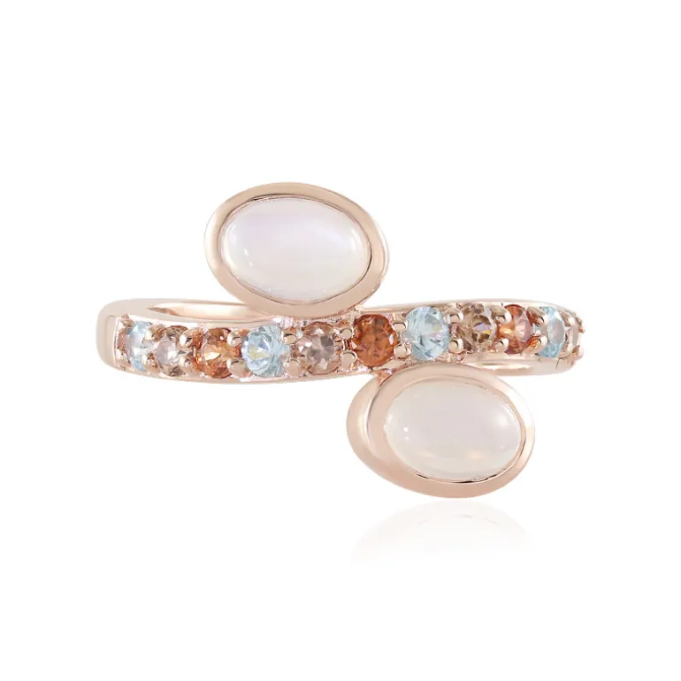 Indischer Mondstein & Gemischter Edelstein Rose vergoldeter Ring