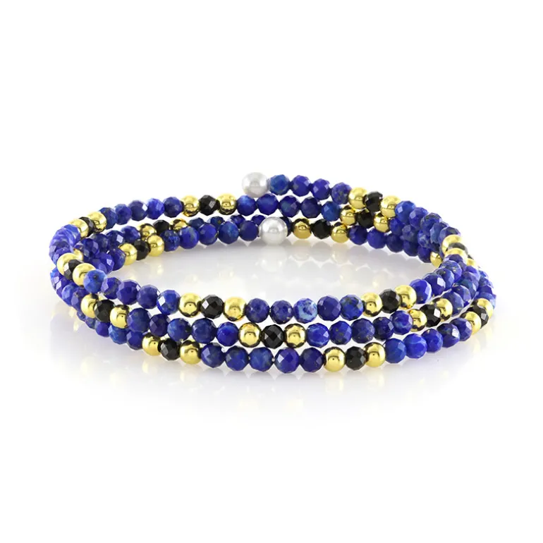 Dieser modische Armreif verbindet harmonisch das tiefe Blau des Lapislazuli mit dem geheimnisvollen Schimmer schwarzer Spinelle und goldener Hämatitperlen, unterstrichen von der klassischen Eleganz weißer Süßwasserperlen. Mit einer Reihe von atemberaubenden Perlen aus aller Welt, insgesamt 42,3 Karat, ist dieses Armband ein Zeugnis globaler Schönheit. Das aus robustem Stahl gefertigte Armband mit den Maßen 60 x 60 mm ist ein echter Hingucker am Handgelenk. Dieser Armreif passt sowohl zu legerer als auch zu formeller Kleidung und kann Sie zu einer Vielzahl von Anlässen begleiten und jedes Outfit mit einem Hauch von Raffinesse ergänzen.