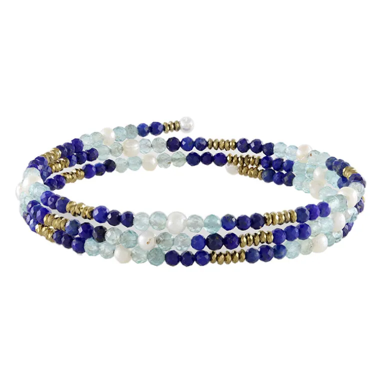 Entdecken Sie die Eleganz dieses Armreifs aus Stahl, der mit lebhaftem afghanischem Lapislazuli, brasilianischen blauen Apatiten und goldenen Hämatitperlen verziert ist. Ergänzt durch weiße Süßwasserperlen aus China, bietet dieses Schmuckstück eine luxuriöse Mischung aus Texturen. Es eignet sich perfekt, um sowohl legere als auch formelle Outfits mit einem Hauch von Raffinesse zu versehen, und lässt sich nahtlos von Tag zu Abend tragen, was es zu einer vielseitigen Ergänzung Ihrer Schmucksammlung macht.