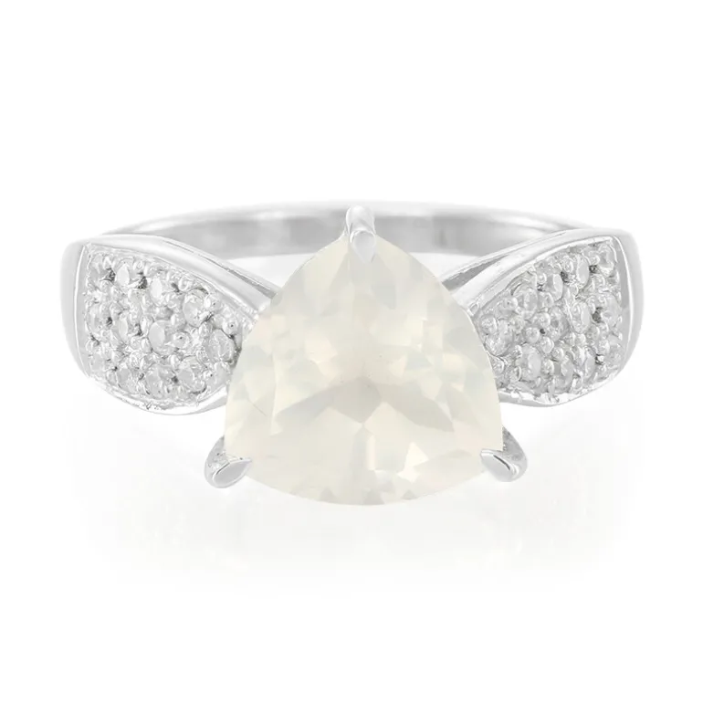 Dieser atemberaubende Ring präsentiert einen 3,12-karätigen Eismond-Quarz aus Brasilien, der wunderschön in Trilliant-Form geschliffen ist. Ergänzt durch 24 kambodschanische Zirkonsteine, ist dieses exquisite Stück aus 925er Sterling Silber gefertigt und wiegt ca. 2,33 g. Ideal für besondere Anlässe, passt das elegante Design perfekt zur Abendgarderobe und verleiht jedem Outfit einen Hauch von Raffinesse und Brillanz.