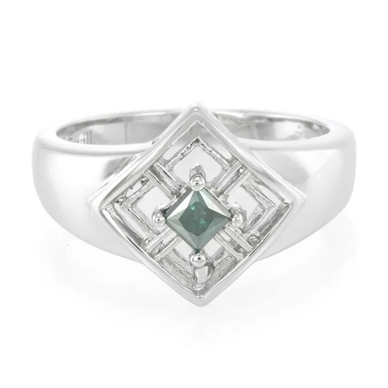 Verleihen Sie Ihrer Kollektion einen Hauch von Eleganz mit diesem Fancy Diamond Silver Ring. Der Ring ist mit einem quadratischen Diamanten im Prinzessinnenschliff von 0,23 Karat besetzt und besticht durch sein komplexes geometrisches Design. Er ist aus platiniertem 925er Sterling Silber gefertigt und wiegt angenehme 3,49 g. Dieses raffinierte Schmuckstück lässt sich wunderbar mit Abendgarderobe oder formellen Anlässen kombinieren. Ideal für besondere Anlässe und alltägliche Eleganz.