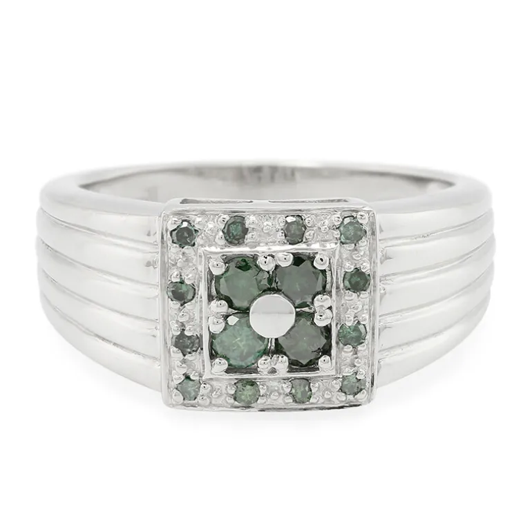 Dieser bezaubernde Ring präsentiert die Brillanz von Fancy-Diamanten in hochwertigem platiniertem 925er Sterling Silber. Mit einem Gesamtkaratgewicht von 0,42 ct sind die Diamanten in der Mitte kunstvoll in einem runden Brillantschliff angeordnet und werden durch kleinere Diamanten im Rundschliff ergänzt, um das Funkeln zu verstärken. Mit einem Gewicht von ca. 4,26 g und einer Größe von 28 x 26 mm ist der Ring eine kühne und atemberaubende Ergänzung für jedes Ensemble. Dieses Schmuckstück ist perfekt für alle, die die zeitlose Eleganz von Diamanten in Kombination mit der Beständigkeit von Sterlingsilber zu schätzen wissen. Er eignet sich sowohl für zwanglose Ausflüge als auch für formelle Anlässe und verspricht, ein vielseitiges und geschätztes Stück in Ihrer Schmucksammlung zu werden.