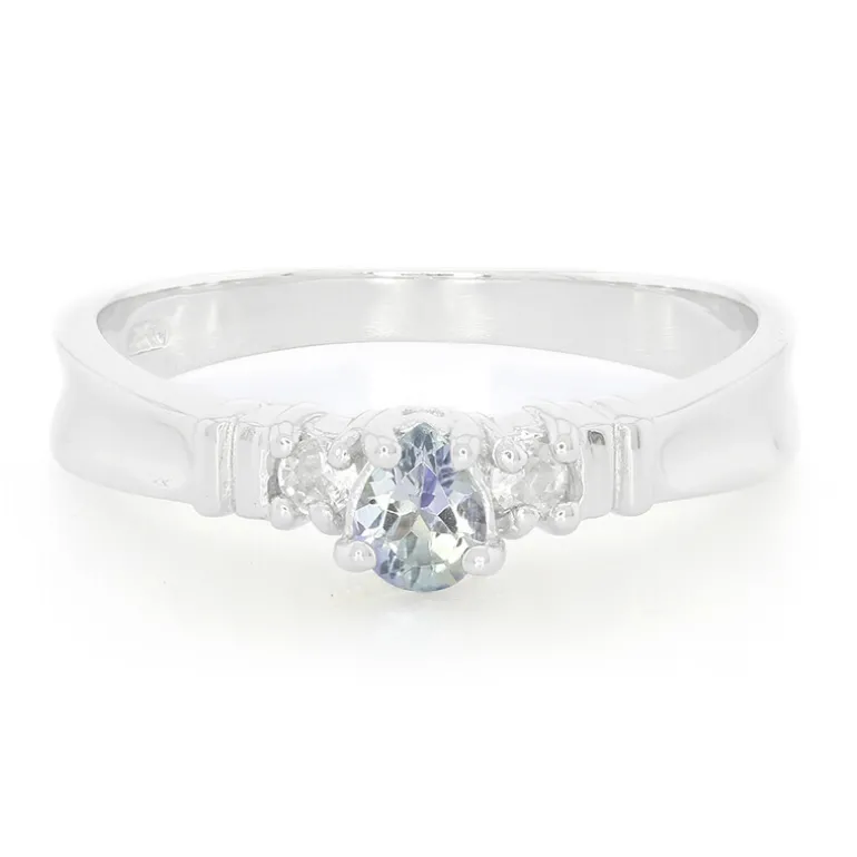 Erleben Sie Eleganz mit diesem Tansanit-Sterlingsilberring. Der birnenförmige Tansanit aus Tansania, ergänzt durch einen weißen Topas im Rundschliff aus Brasilien, bildet einen atemberaubenden optischen Kontrast. Dieser Ring eignet sich sowohl für den Tag als auch für den Abend und verleiht jedem Outfit einen Hauch von Raffinesse. Kombinieren Sie ihn mit einem eleganten Kleid für ein schickes, poliertes Aussehen.