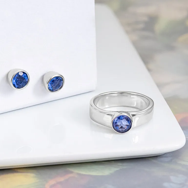 Dieses bezaubernde Set besteht aus einem chinesischen Fluorit im Rundschliff mit 1,641 Karat Farbwechsel. Das Set besteht aus 925er Sterlingsilber mit einem eleganten Platin-Finish und umfasst einen nahtlos gestalteten Ring und ein Paar Ohrstecker, die jeweils einen Edelstein präsentieren, der eine bezaubernde Palette von Farbtönen widerspiegelt. Dieses Set ist ideal für die Größen 16 bis 21 und kann mit seinen magischen Farbverschiebungseigenschaften Ihren Look vom Tag zum Abend verändern und eine Reihe von Outfits ergänzen.