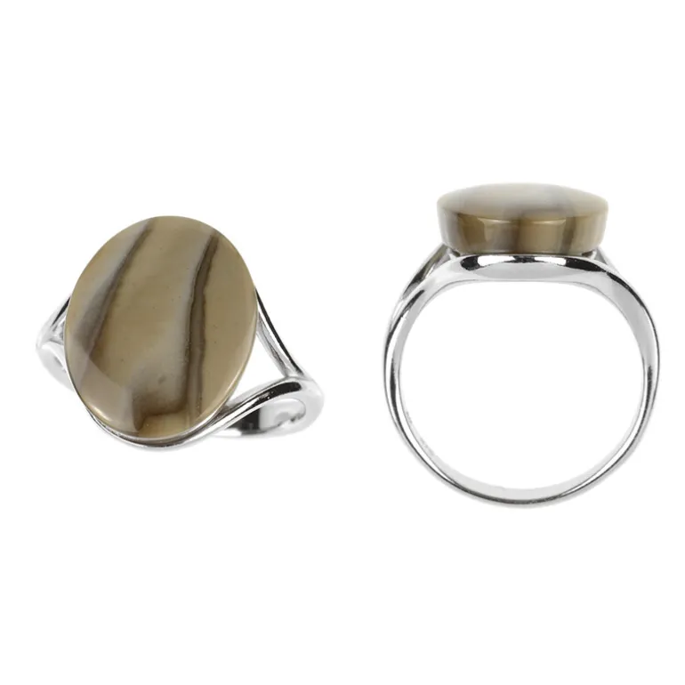Entdecken Sie die erdige Anziehungskraft dieses Rings aus polnischem Feuerstein, gekrönt von einem ovalen Cabochon von 6,7 Karat, der die Farben der Natur in einer heiteren Mischung einfängt. Der aus hochwertigem 925er Sterlingsilber gefertigte Ring ist nicht nur ein Beweis für feine Handwerkskunst, sondern auch für die Schönheit natürlicher Edelsteine. Der glatte, gewölbte Edelstein ist elegant gefasst und passt sowohl zu legeren als auch zu formellen Anlässen. Er ist ideal für Sammler und Modebegeisterte gleichermaßen und verleiht jeder Schmucksammlung eine einzigartige Note.