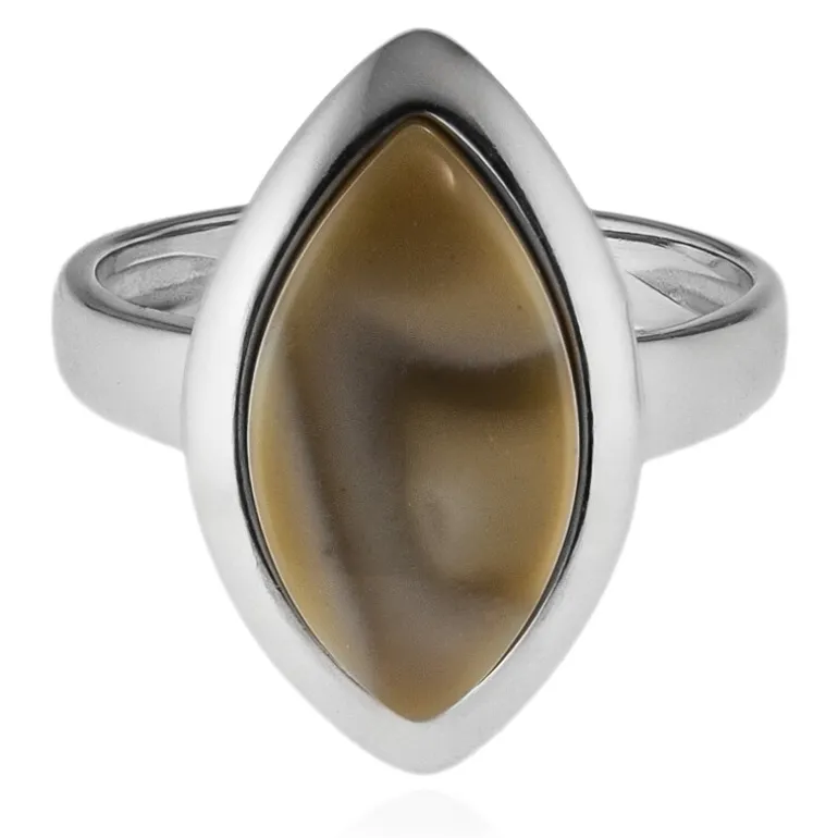 Entdecken Sie die Eleganz dieses Marquise-Cabochon-Rings mit einem Feuerstein von 3,45 Karat, der aus Polen stammt. Er ist in 925er Sterlingsilber gefasst und präsentiert eine einzigartige Mischung aus natürlichen Farbtönen und raffinierter Handwerkskunst. Dieses Schmuckstück eignet sich sowohl für die Freizeit als auch für formelle Anlässe und passt sowohl zur Abendgarderobe als auch zu beruflichen Anlässen und verleiht ihnen einen Hauch von Eleganz.
