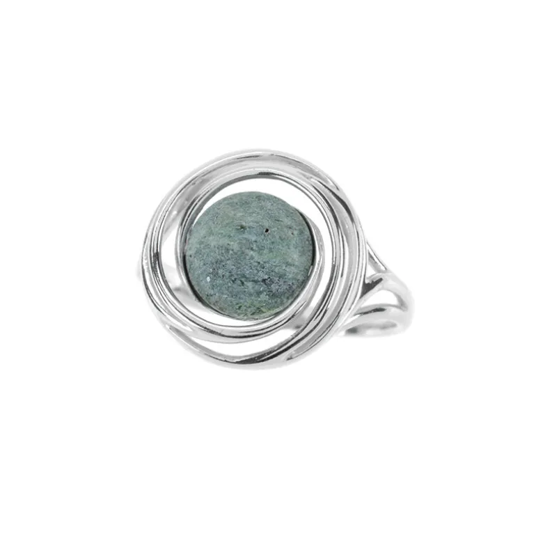 Entdecken Sie die natürliche Anziehungskraft dieses atemberaubenden Rings aus Sterlingsilber mit einem einzigartigen brasilianischen Fuchsit von 2,15 Karat. Der runde Cabochon-Edelstein mit seinem erdigen Grünton ist anmutig in ein 925er Sterlingsilber-Wirbeldesign eingebettet, das die organische Schönheit des Steins zur Geltung bringt. Dieser Ring eignet sich perfekt, um jedem Outfit einen Hauch von naturinspirierter Eleganz zu verleihen, und ist ein vielseitiges Schmuckstück für den Tag und die Nacht. Ideal für alle, die den Charme einzigartiger Edelsteine zu schätzen wissen. Vervollständigen Sie Ihre Schmucksammlung mit diesem ruhigen und fesselnden Stück.
