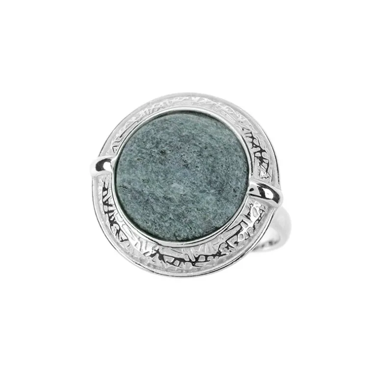 Entdecken Sie die ruhige Schönheit der Natur mit diesem bezaubernden Ring aus brasilianischem Fuchsit. Der runde Cabochon in 925er Sterlingsilber ist mit einem harmonischen, ca. 13 mm großen Edelstein von 5,64 ct besetzt, der die Essenz eines üppigen, grünen Waldes einfängt. Das geschmackvoll gearbeitete 25×20 mm große Silberband weist subtile Details auf, die die ruhigen Grüntöne des Fuchsits ergänzen und ihn zu einem vielseitigen Accessoire sowohl für legere als auch für formelle Outfits machen. Dieser Ring ist perfekt für alle, die den Reiz einzigartiger, handwerklich gefertigter Edelsteine zu schätzen wissen, und ist ein elegantes Statement für einen raffinierten Geschmack.